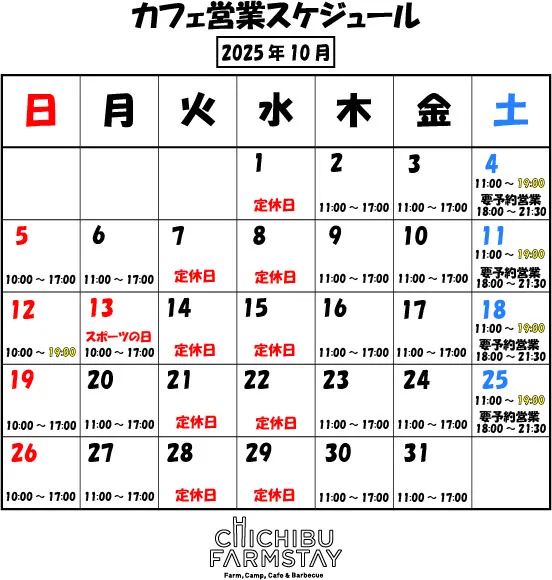 カフェ10月の営業スケジュールです 2025.09.01 Tweet Share Hatena Pocket RSS feedly Pin it この記事のタイトルとURLをコピーする 引き続き10月も毎週土曜日要予約にて夜間営業です。 皆様のご来店お待ちしています! Tweet Share Hatena Pocket RSS feedly Pin it 新サイトマップです 前の記事 ビアガーデン引き続き開催! 次の記事
