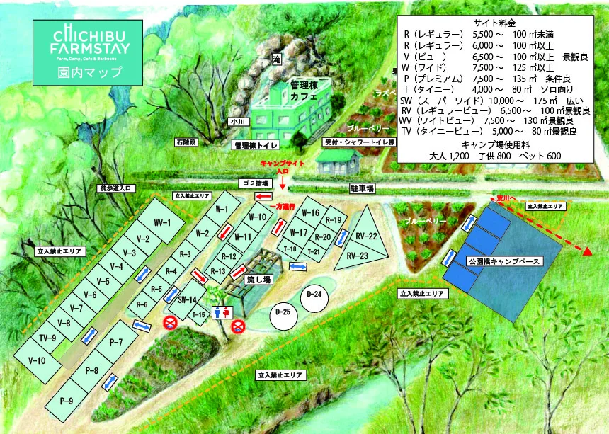 秩父のシンボルの1つになっている秩父公園橋(別名ハープ橋)の下に位置し、5月下旬頃からさくらんぼ、6月中旬頃からラズベリー、ブルーベリーの収穫体験も行えます。